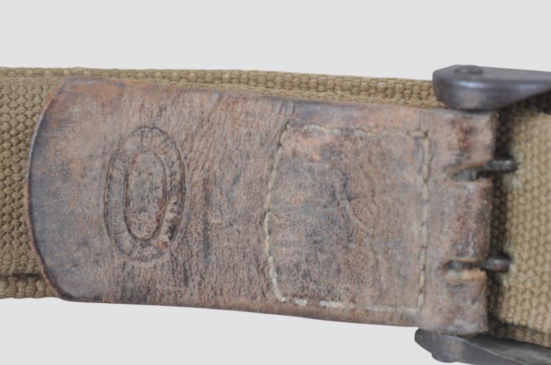 The naturally coloured webbing issues of belt are late war issue produced as a practical alternative to leather. Both belt hook & buckle are in steel this being a good set that has always been together.