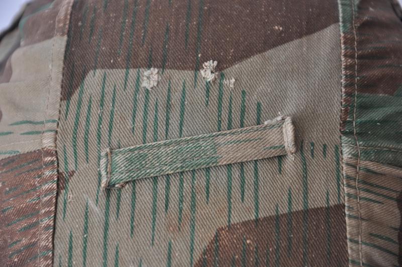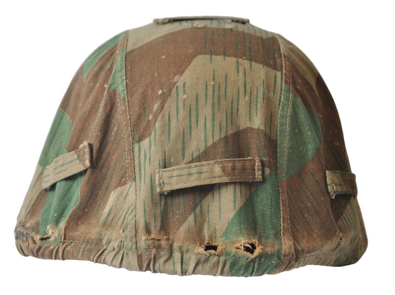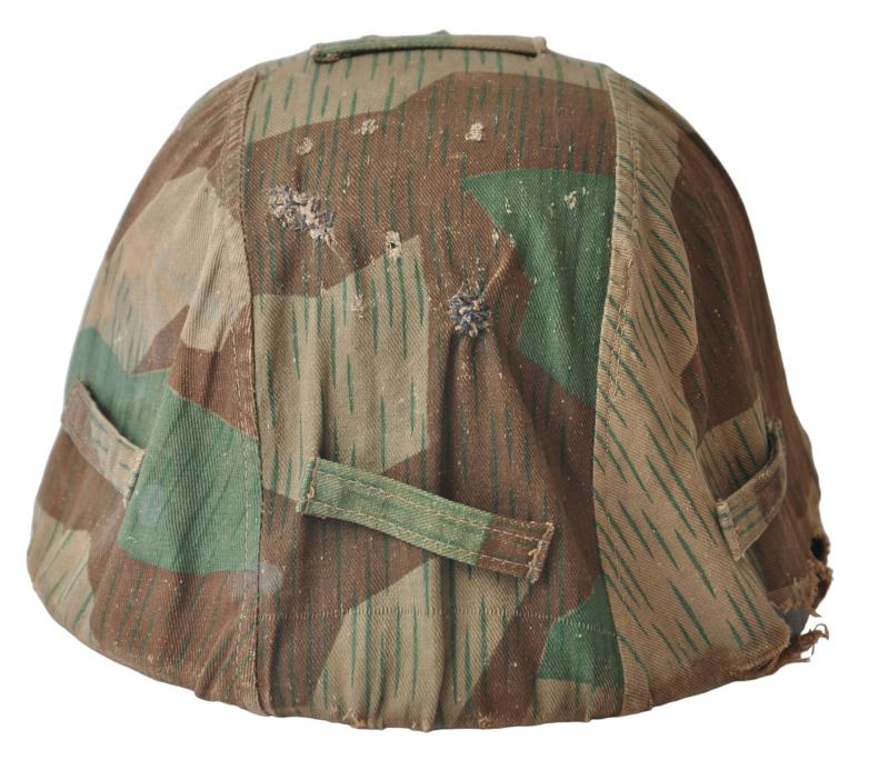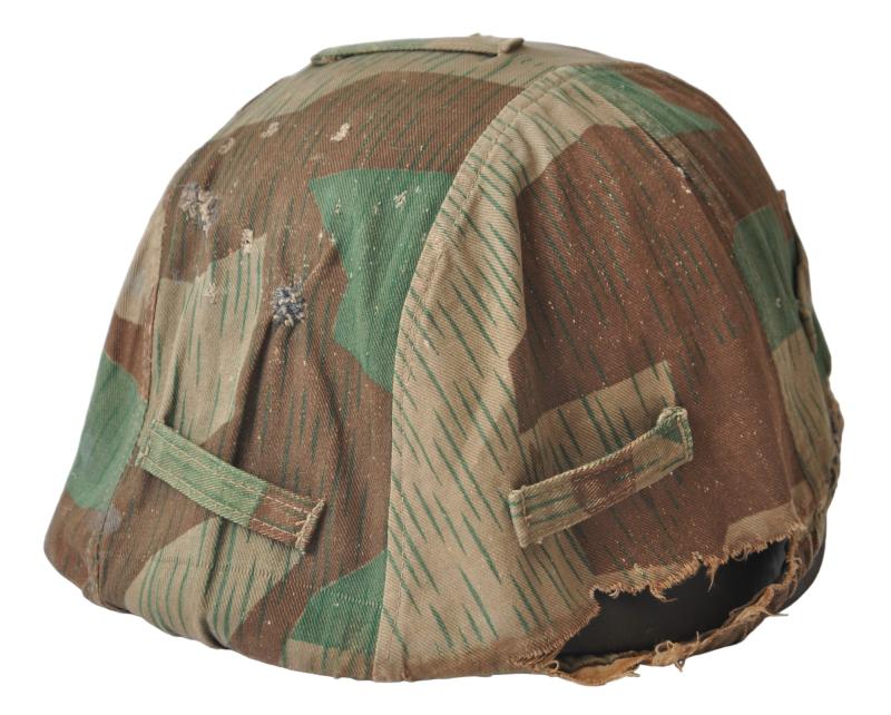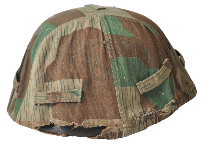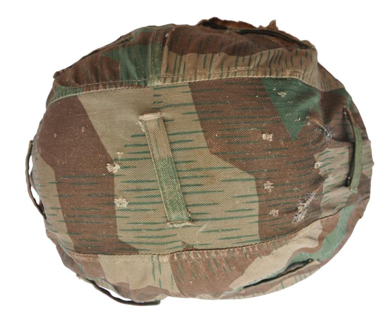 A textbook factory made German Wehrmacht splinter camouflage helmet cover with good strong colours & overall field wear.