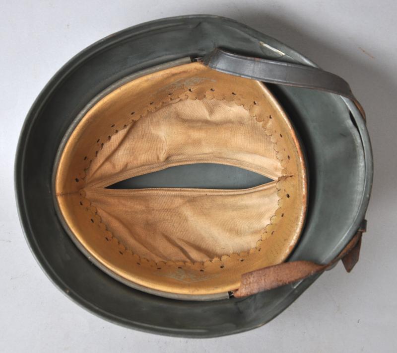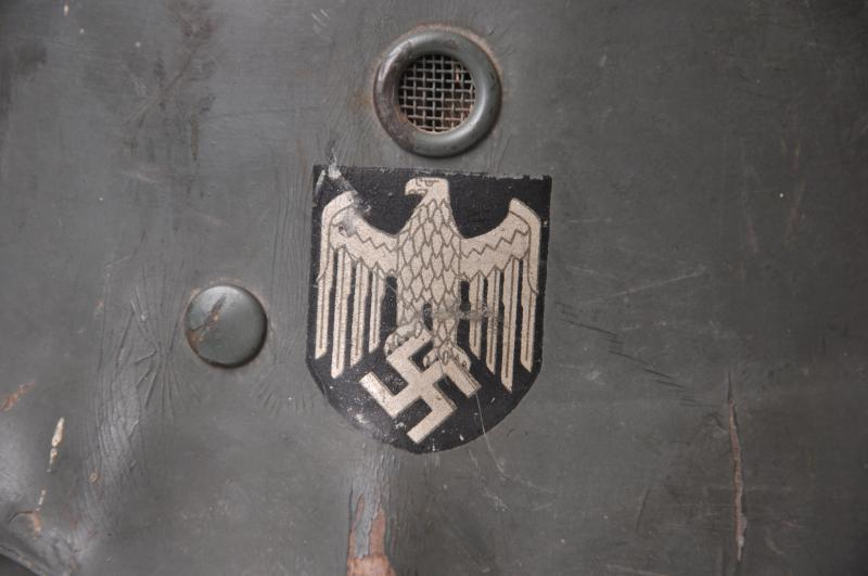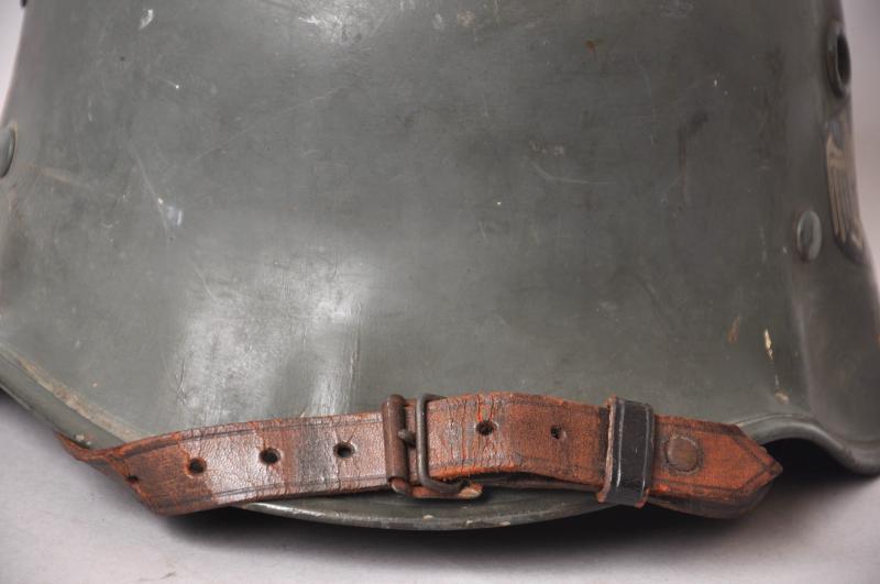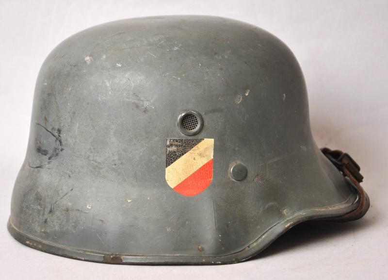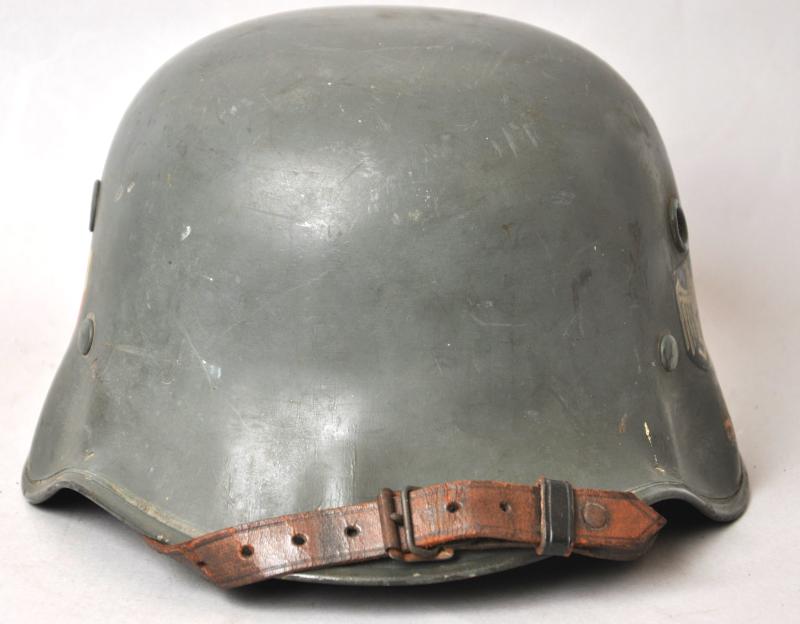 These were made for private purchase by members of the army as well as other branches of the German forces this piece having double decals for the Heer. Much of its original green paint finish remains with both decals still much intact. Interior liner resembles that of an officers dress helmet with champagne lining & leatherette sweatband having embossed 'Erel' trademark . Comes complete with original chinstrap.