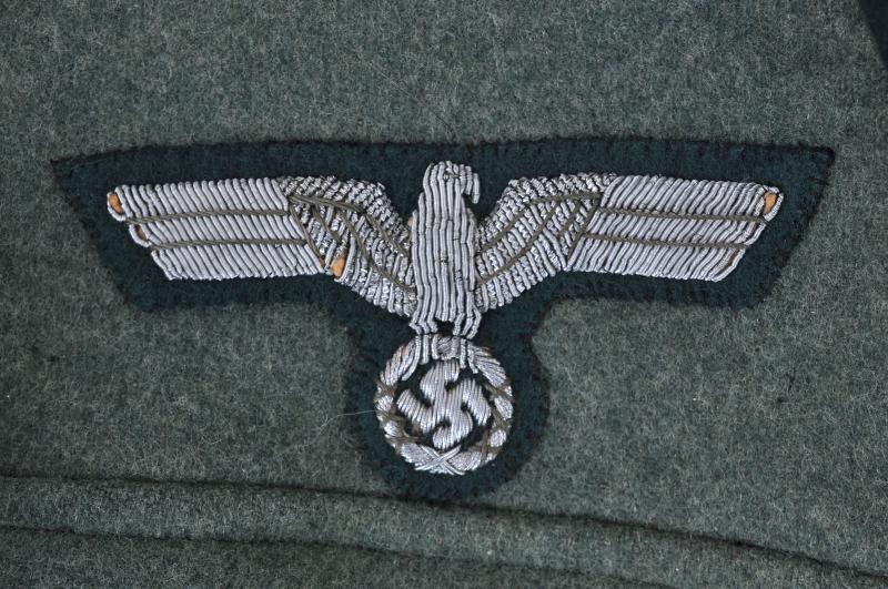 An untouched private purchase medical officers tunic in the early M36 style with dark green collar & Gebirgsjager badge to right arm denoting this officer was attached to a Mountain troops unit.
