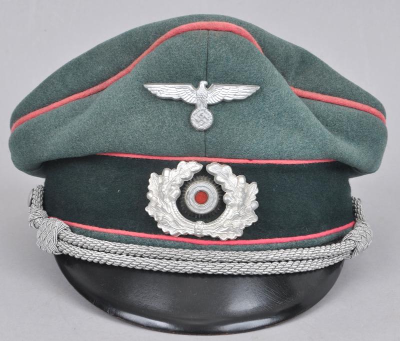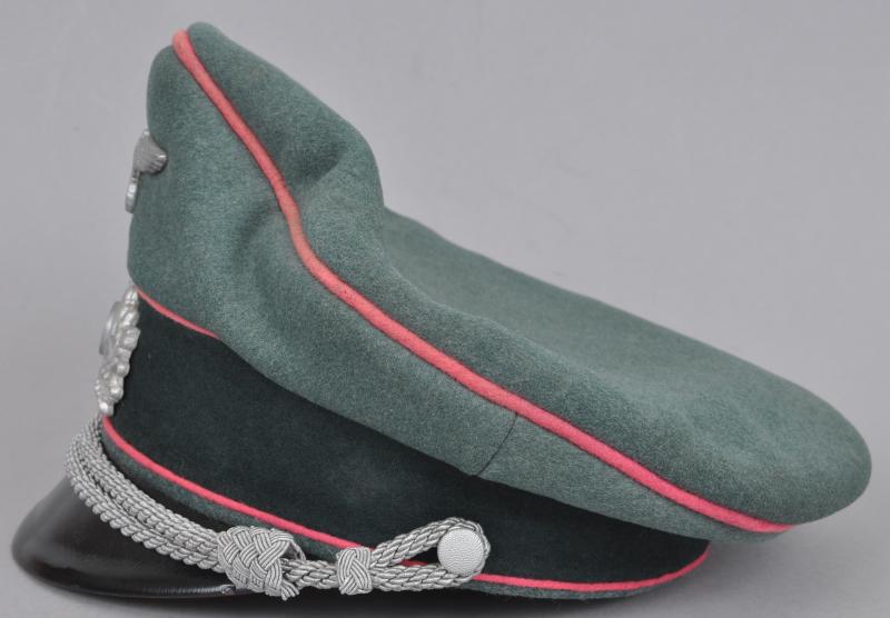 A superb 'jaunty' looking private purchase pink piped panzer officers peaked cap by the famous cap maker Pekuro ( Peter Kupper) .