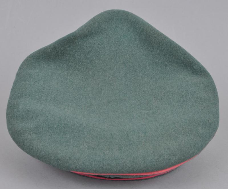 Having survived in overall excellent condition this is very much a field worn cap & shows some tears in places to the sweatband which has stiffened with age. There is a tiny hardly noticeable moth nip to the pink piping at front top of green band & a 3cm surface moth track to top of the cap.