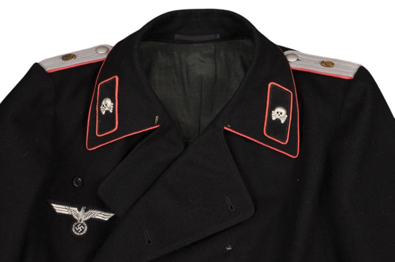 Scarce 1939 dated black panzer wrapover tunic with early pink piped collar & officers pink piped shoulder boards bearing the numerals '6' to each side.
