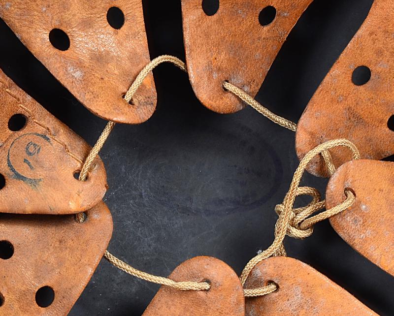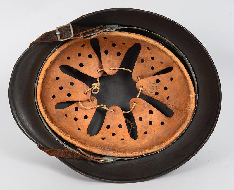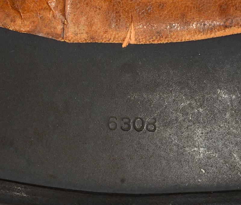The helmets size 64 outer shell has a very high percentage of dark blue grey as well as the typical characteristic pattern of eagle found upon late Q maker M35 and early M40 helmets . The 2nd pattern eagle has a wonderful deep ivory tone and is 85 % + complete with some abrasions to the wings . The tricolour is exceptional with the same deep ivory tone and 98% present . Helmet has steel band which is totally correct for this helmet being a late M35 contract run with high '6308' lot number. There is an exact match of this on page 480 of the Brian Ice lot number reference book & an identical example shown in the reference book 'Germany,s Combat helmets 1933/45' by Ken N on pages 48,49 and 50. The liner is good and supple with original draw string . The band is firm and in place with tight unkinked 1940 dated rivets.The chinstrap is well LBA marked with an oval dome stamp clearly visible .