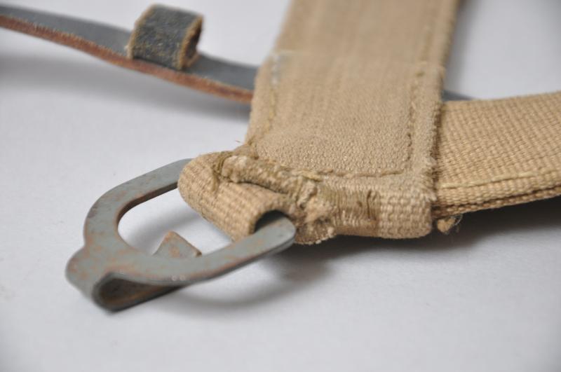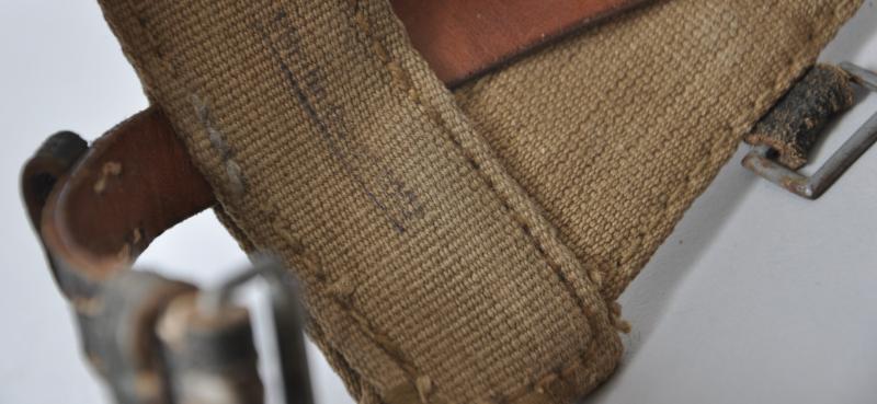 This 100% original piece has all of its original buckles & tabs intact to hold the zeltbahn , A frame bag & messtin with loops to each side to accommodate a greatcoat etc if desired. Stamped with an RB number & having its cowhide stiffeners intact this is a quite excellent example of this rare piece of soldiers equipment.