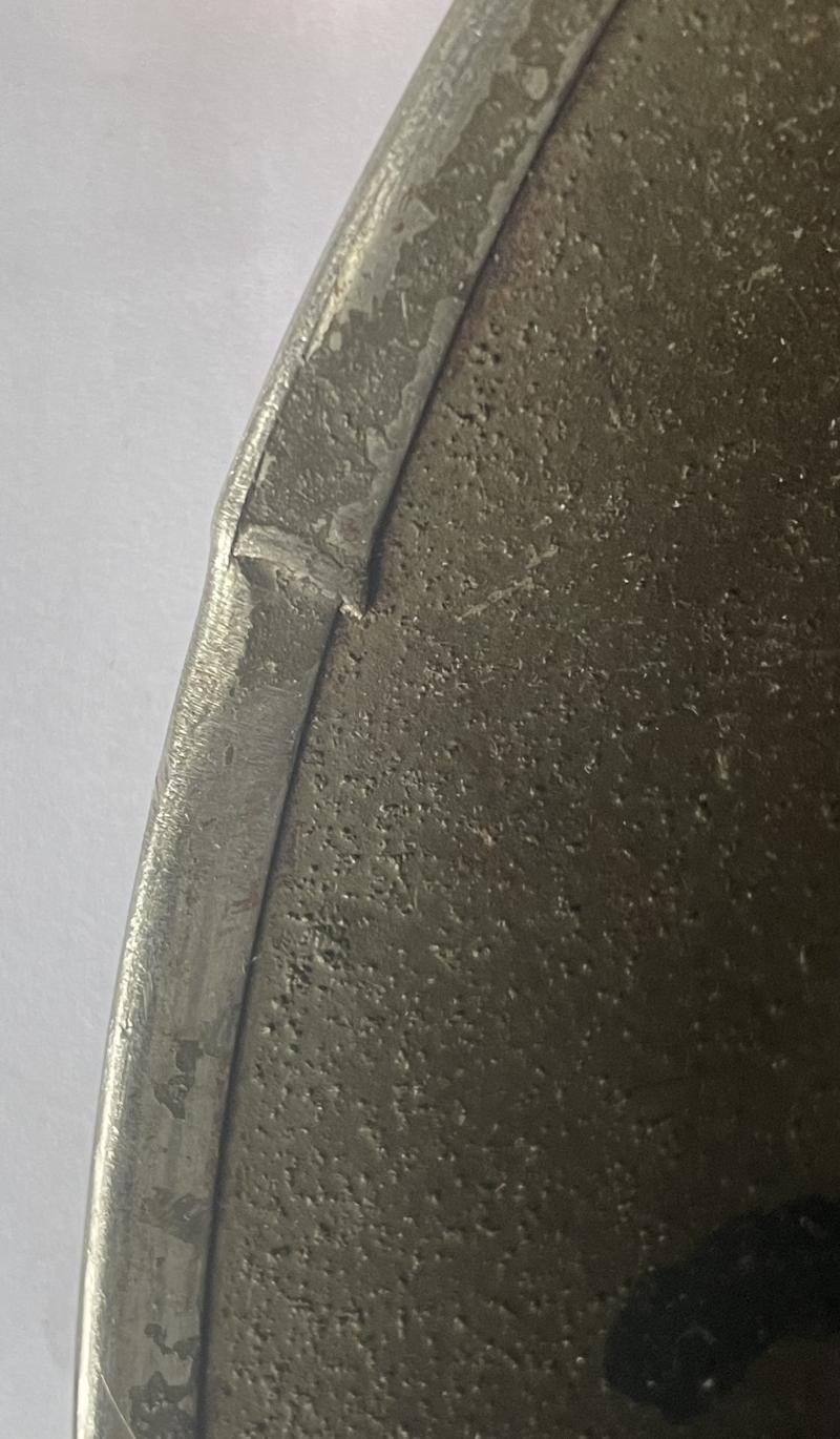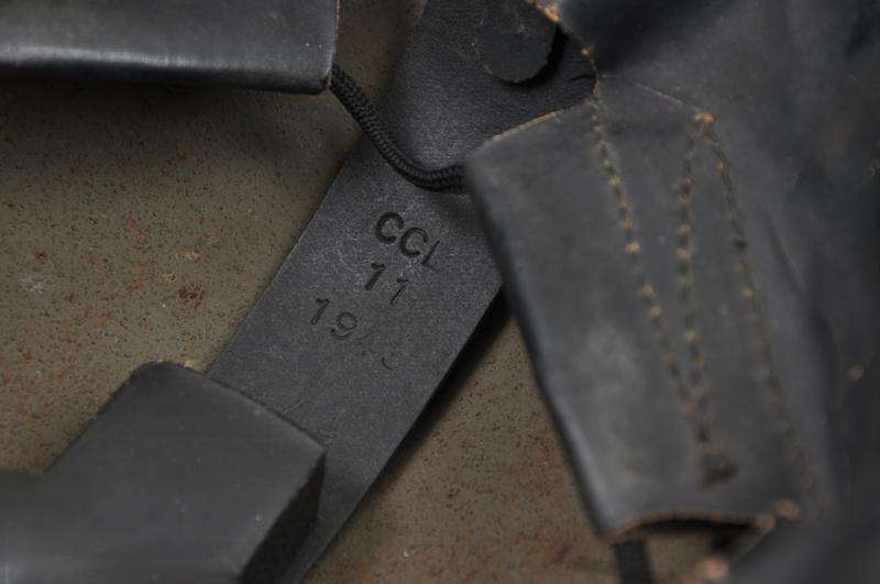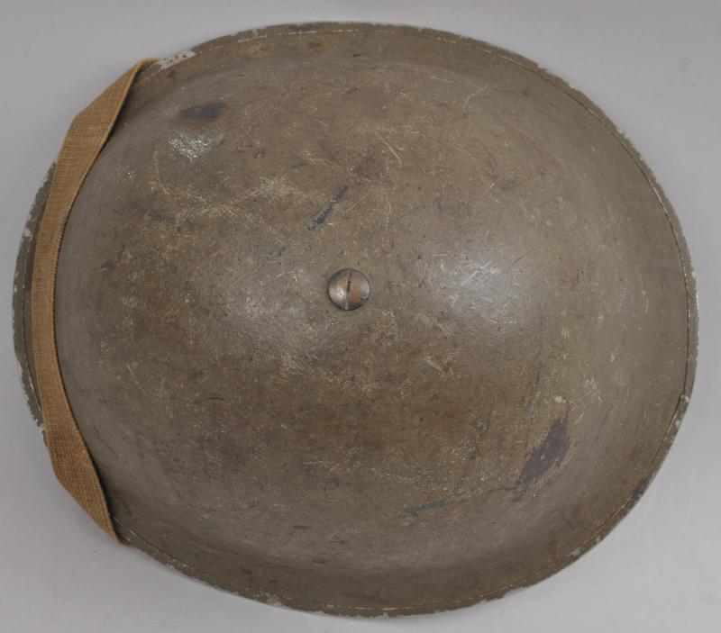 This helmet is still in its original wartime khaki green paint to inside & out having never been repainted . The shell is a BMB ( Briggs Motor Bodies) manufacture this evident by the joined rim. Liner marked 'CCL' with clear 1943 date. Liner screw is from the earlier MkII this being an example of one of the earliest MkIII issues where troops were ordered to swap out the liners from their existing MkII helmets for the new MkIII.
