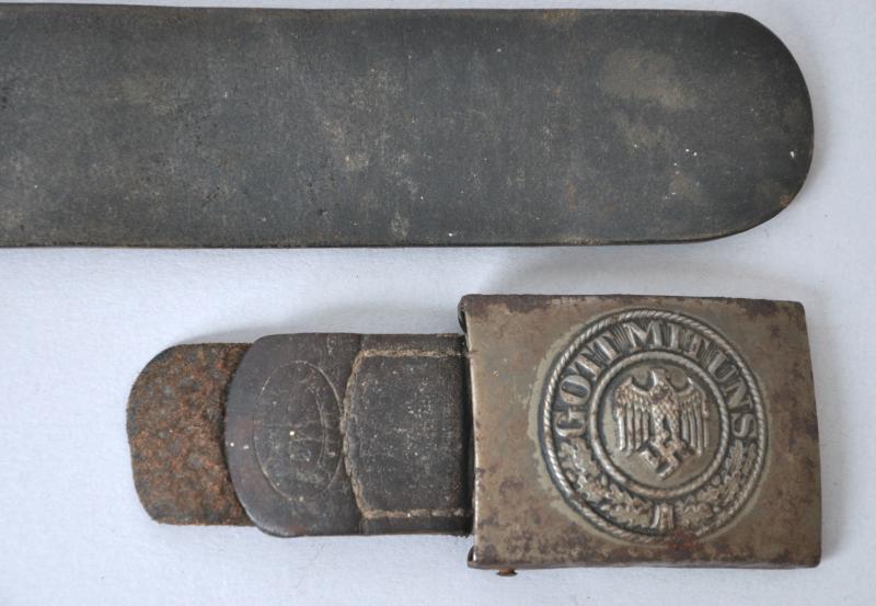 A totally untouched German army belt & buckle that has been together since the war & a piece from the heavy fighting in NW Europe during the 1944 period.