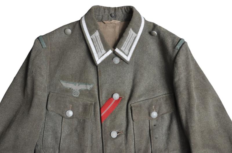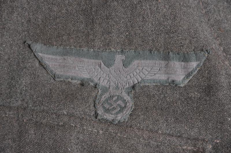 A German M40 four pocket combat tunic with NCO tress to collar & Bevo breast eagle & collar tabs.