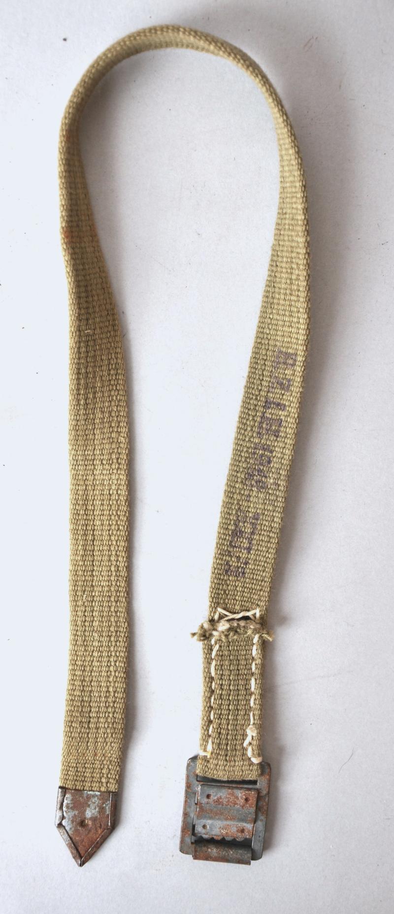 Webbing strap for hanging items from the belt equipment set. Marked with maker initials & 1943 date.