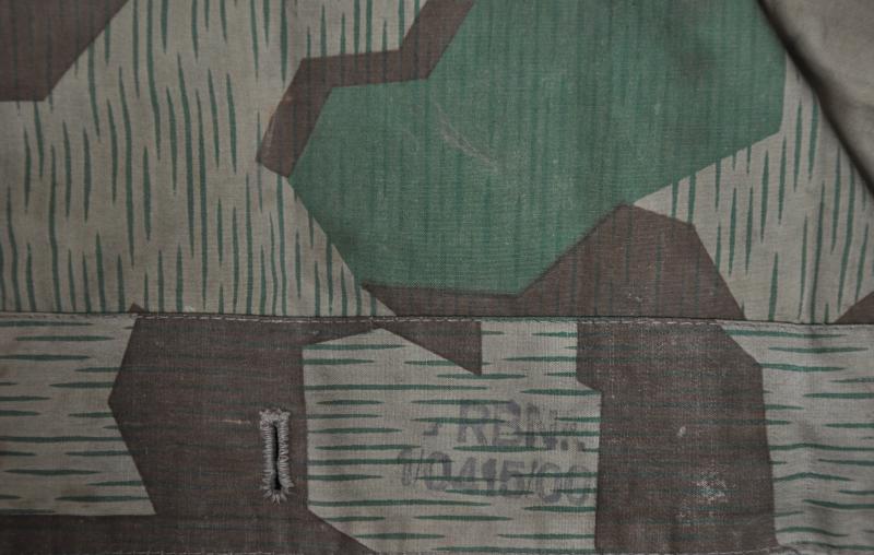 A very good mid to late war splinter camouflage Zeltbahn with all of its zinc buttons still present & zeltbahn rope complete.