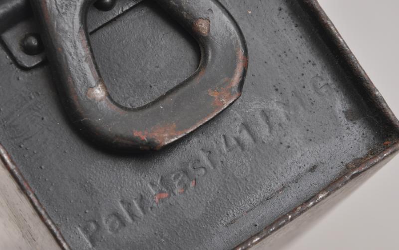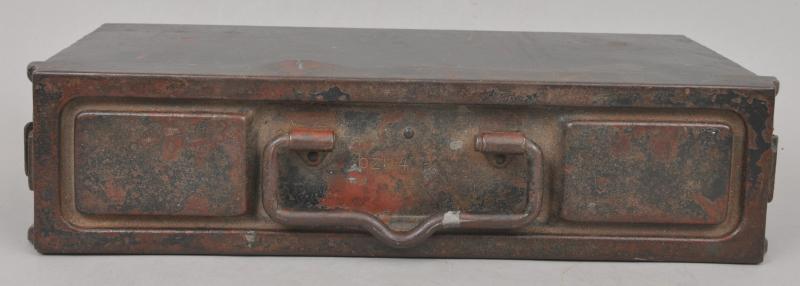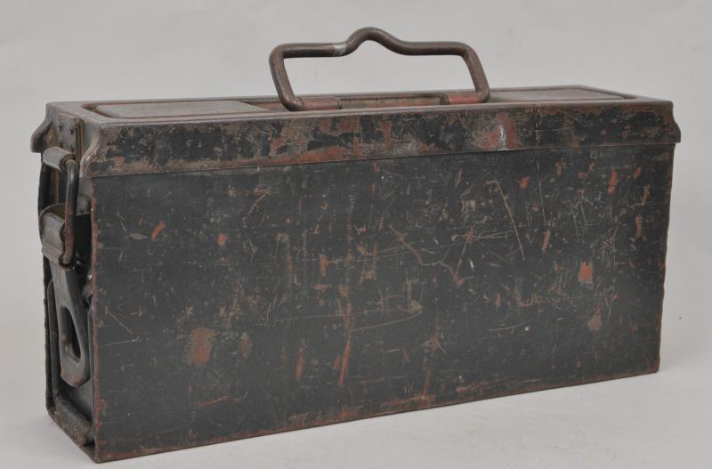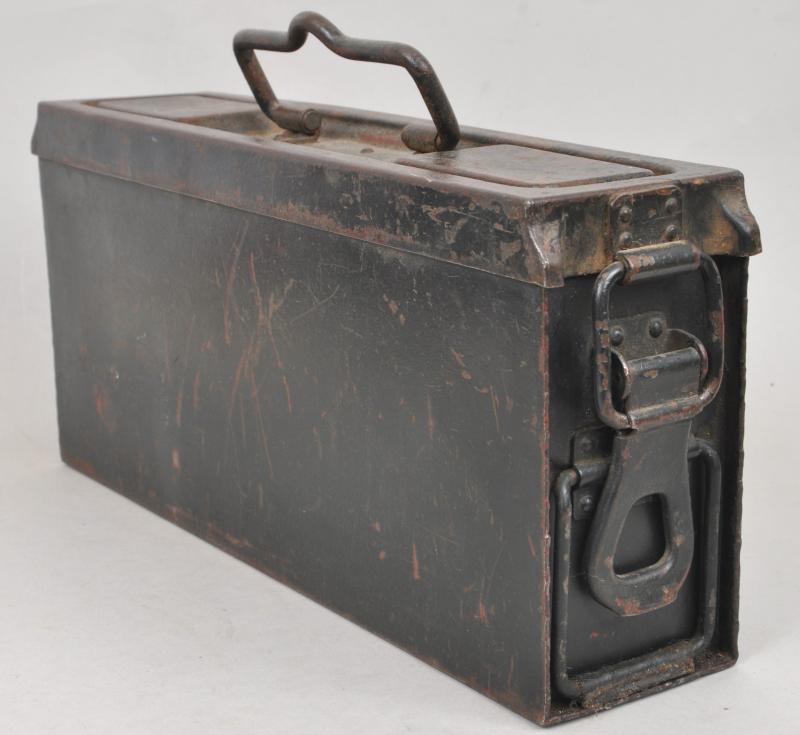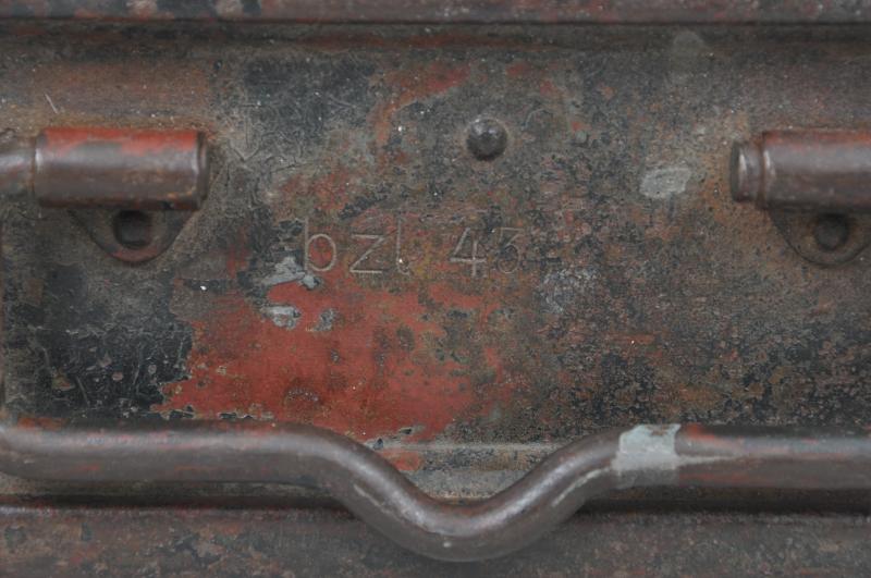 Marked to ends 'Patr.Kast.41 f .MG' & maker marked to lid ' bzl 43' . Red oxide paint visible undernetah its wartime grey paint.