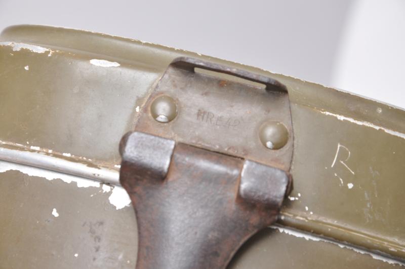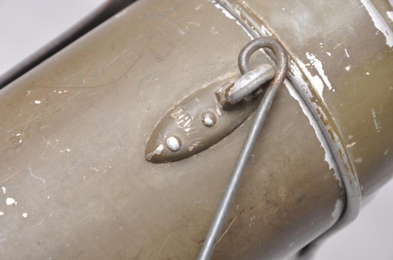 With matching olive green paint to top & bottom the wear & patina on both indicate them having been used together by the soldier. Top marked 'HRE42' with 'OHW41' to bottom. Complete with wire handle.