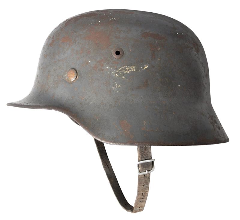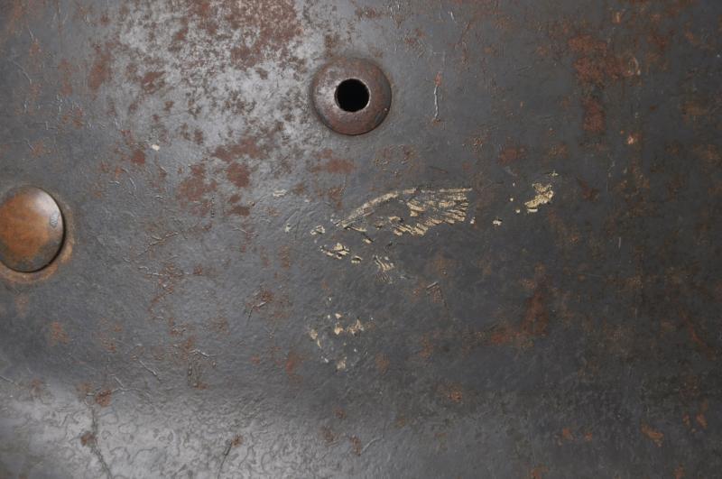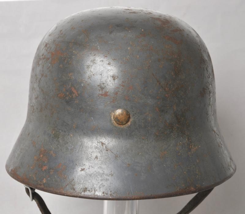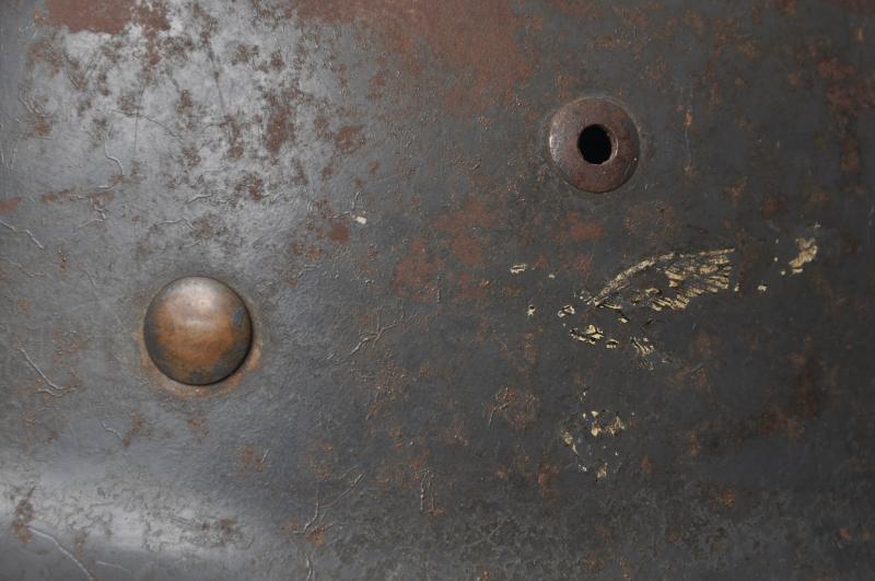 A nice untouched helmet no doubt from a busy Luftwaffe Flak or ground unit fighting in the last days of WW2.