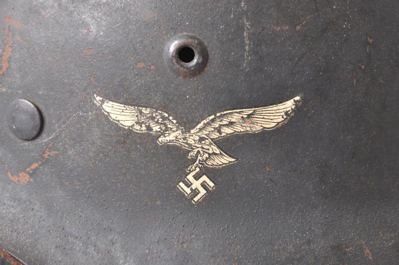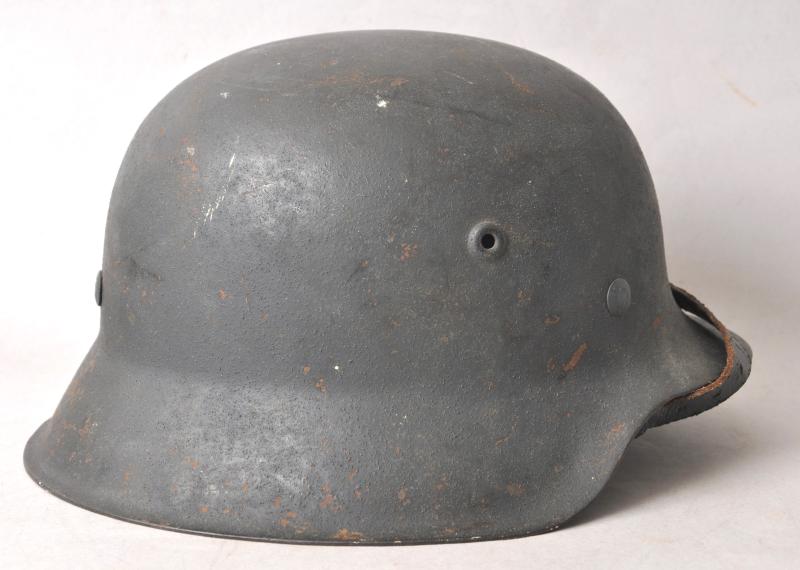 A very nice Luftwaffe single decal M42 'raw edge' helmet complete with chinstrap.