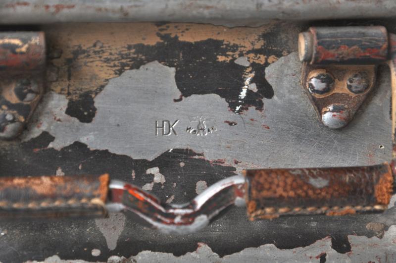 Carrying handle & both side brackets still have their leather tabs , marked to top 'HDK' & eagle & swastika inspection stamped.