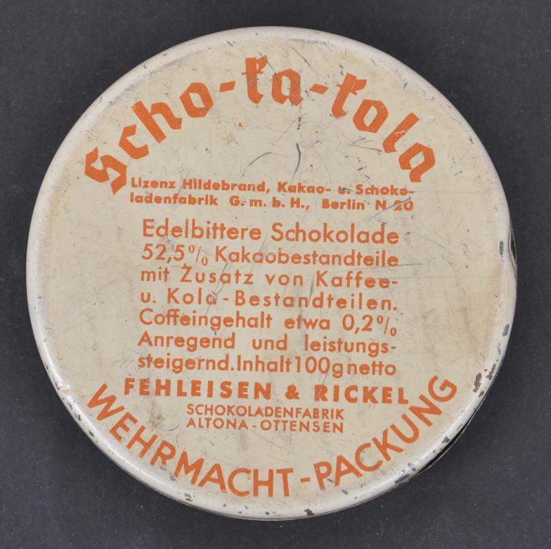 Scarce Wehrmacht issue Chocolate tin with 1939 date. Marked to reverse ' Wehrmachtspackung' .
