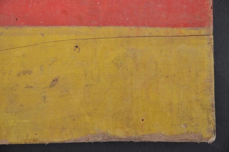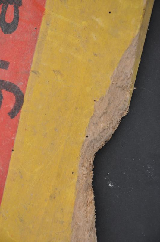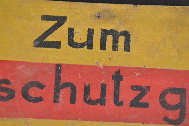 An original sign used In German positions to indicate the presence of shelter trenches for the troops to protect them from artillery/air attack. Painted wooden board with some woodworm & natural ageing throughout.