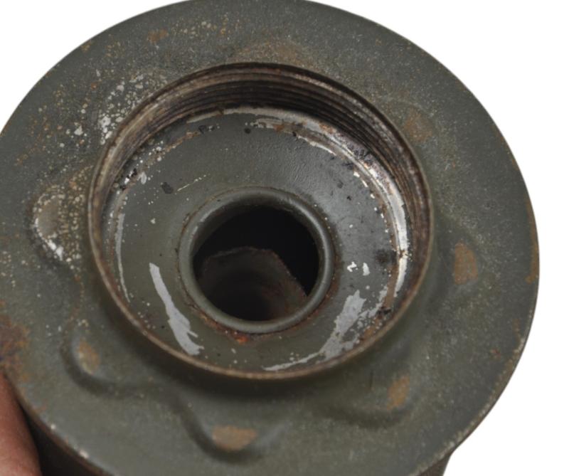 Good amount of green paint remaining to head with three letter code & date '42 evy' . Wood shaft has waffenamt with '43flf '. Screw thread intact with screw cap having some corrosion.