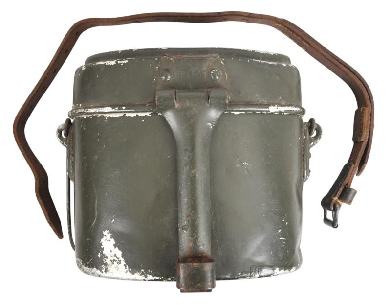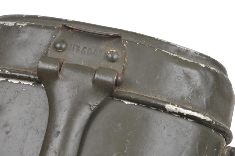 German M31 messtin in dark green painted aluminium with maker & date 'HWSD41' to lid & matching maker to body.