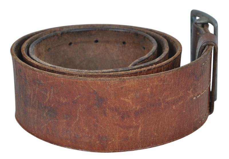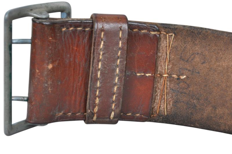 Early issue wide belt in brown leather as worn by officers of the army & luftwaffe with their field tunic. Soldiers name handwritten to one end.