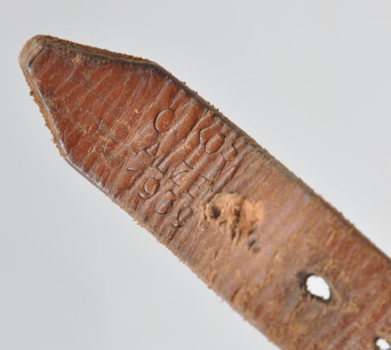 Brown leather luftwaffe equipment strap with early aluminium buckle & maker mark for 'C.Korn' with date 1939.