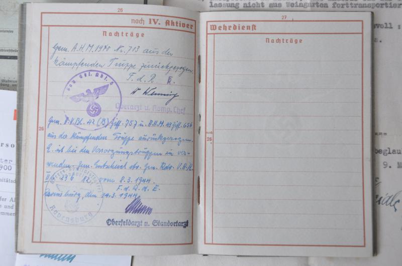 Interesting grouping to a man from Ravensburg who served as a Medic with Soldbuch, Wehrpass & various assorted ephemera.