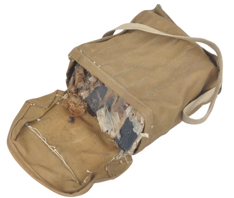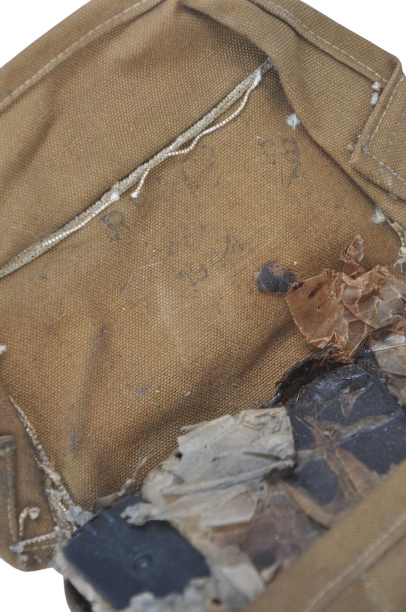 Six Bren Gun magazines still in their greaseproof paper within an Armoured Fighting Vehicle ammunition grab bag dated 1944. *** Uk sales only ***