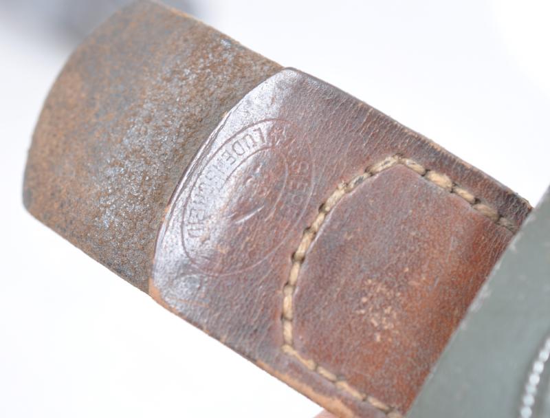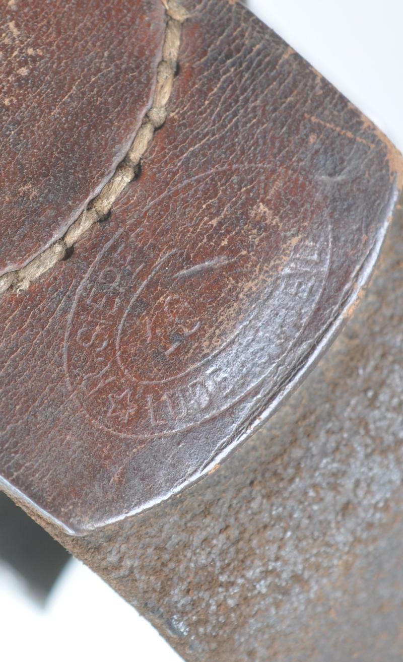 Belt has matching green steel tab with Loburg maker & 1938 date . Late construction belt for this early date Sieper most likely using old stock belt leathers . RS&S initials to inside edge of buckle .