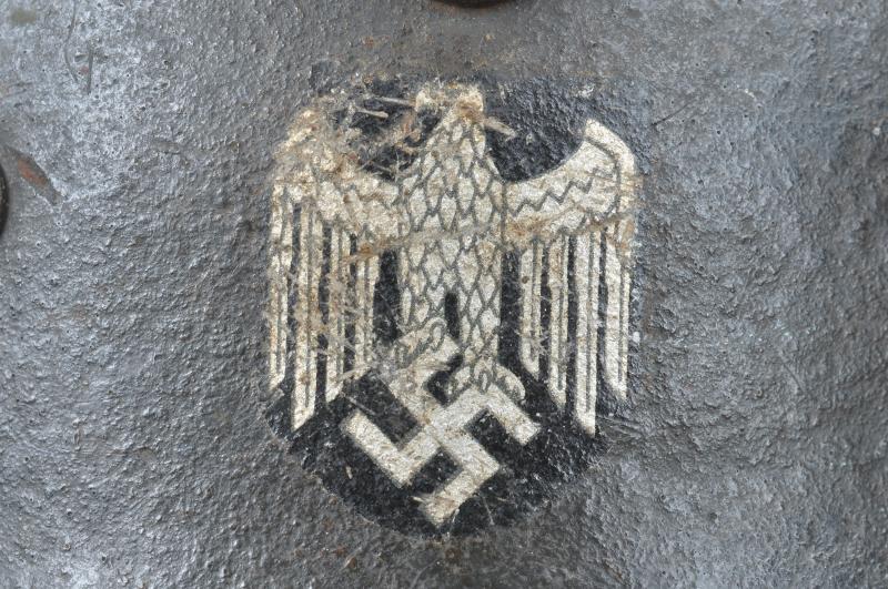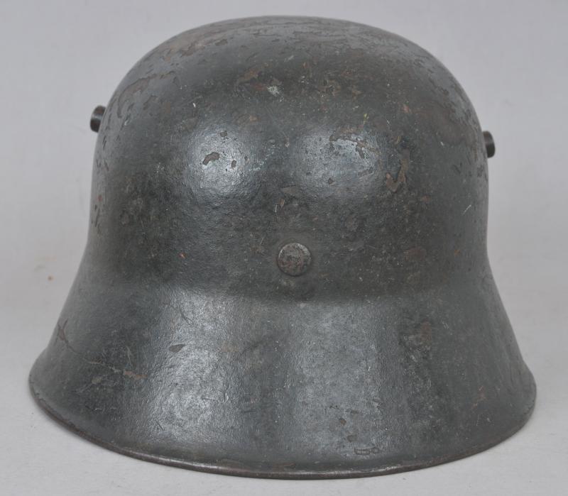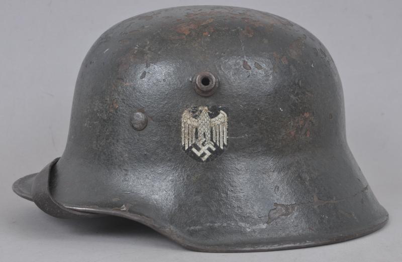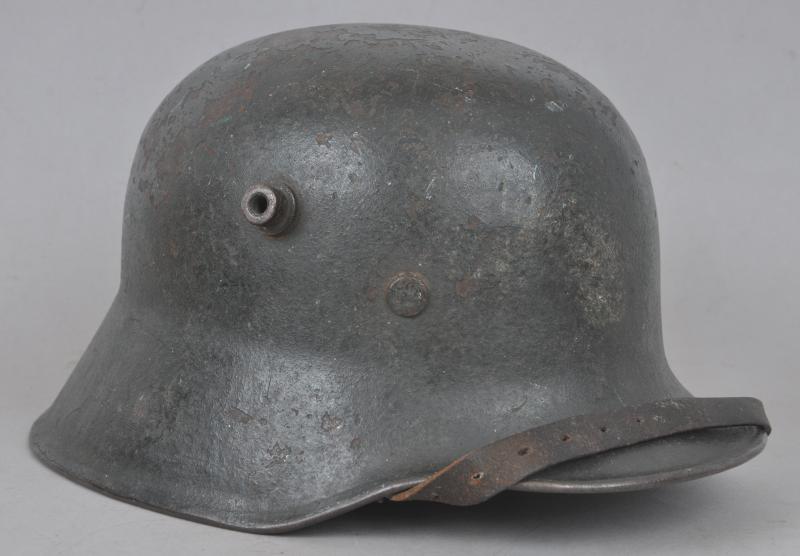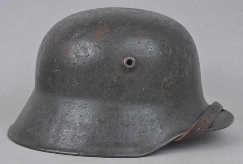 A fabulous example of the Imperial German M18 transitional helmet refinished in the early Third Reich period according to 1940 specification with rough grey/green paint finish & an army single decal in very good condition.