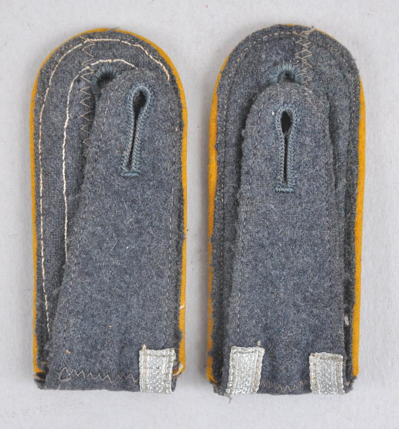 Perfect for the Fliegerbluse or Field Division smock this pair of blue Luftwaffe shoulder boards are NCO rank with yellow branch piping for flight crew or paratroopers.