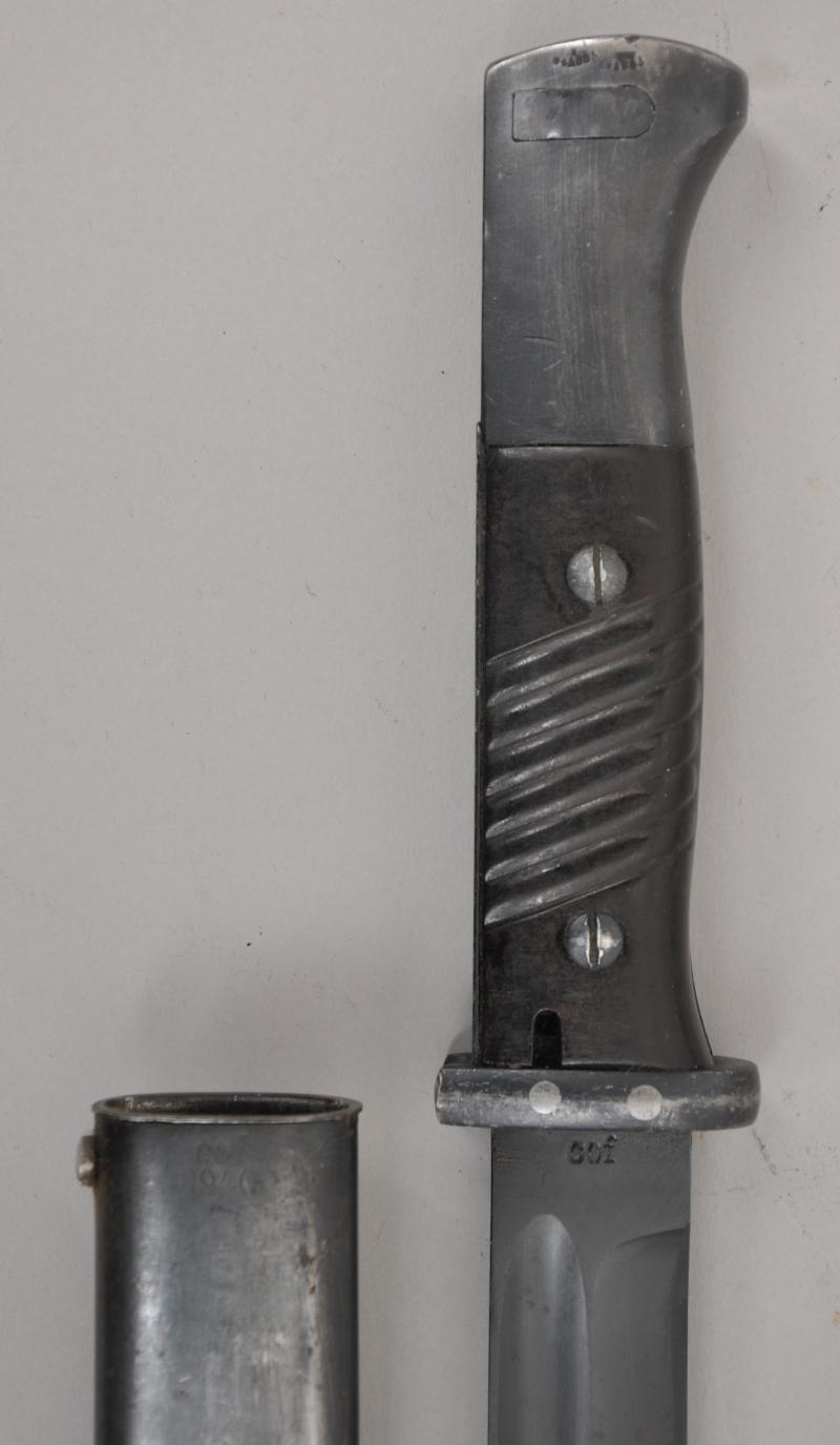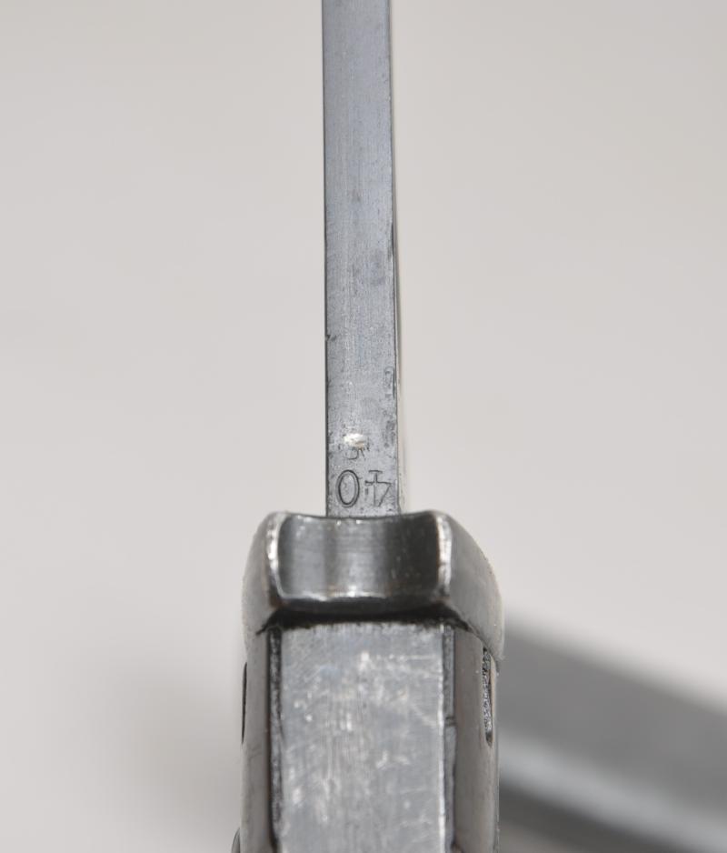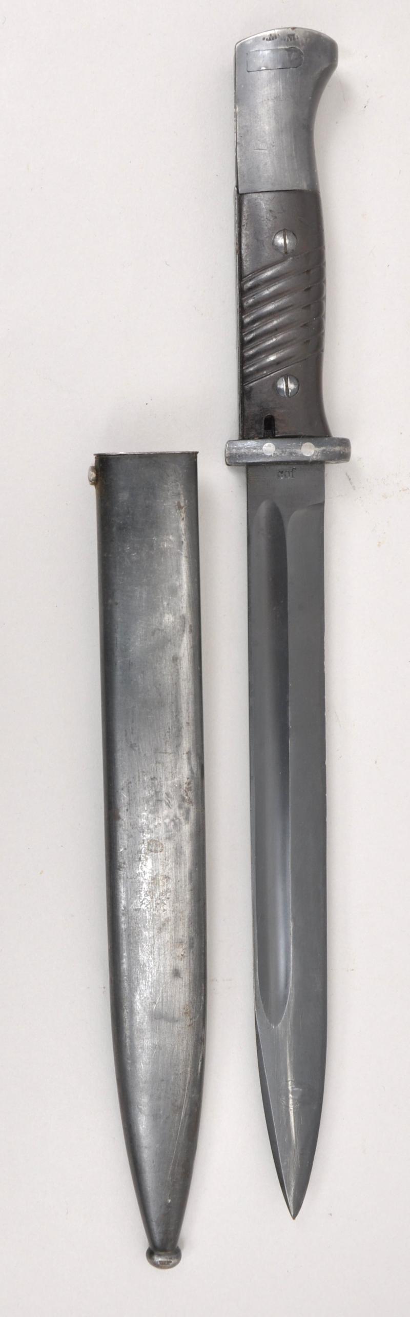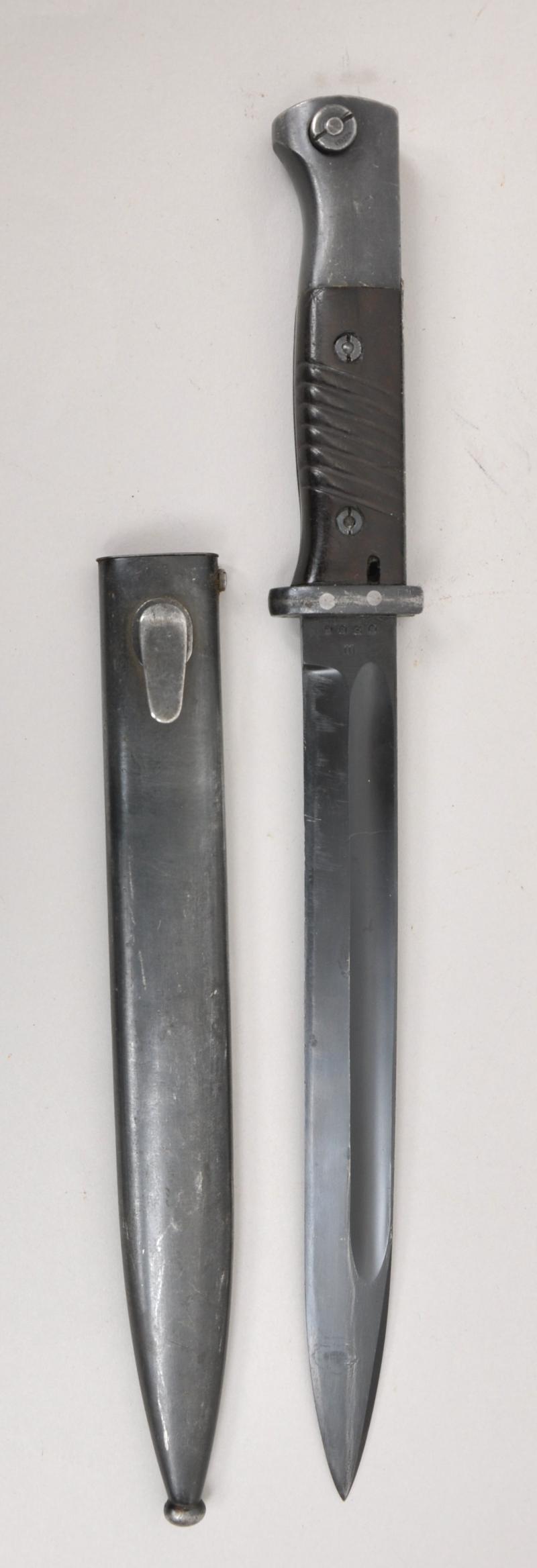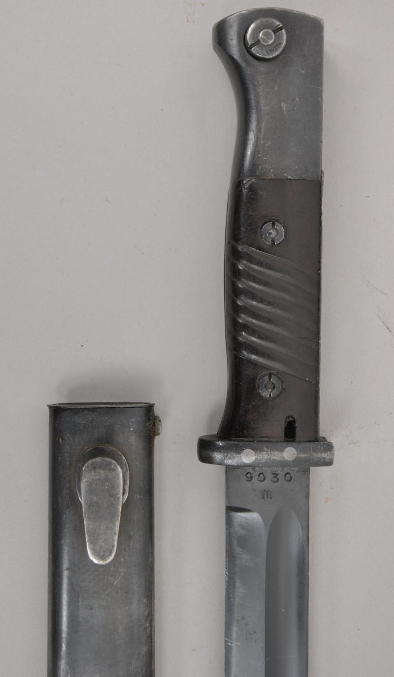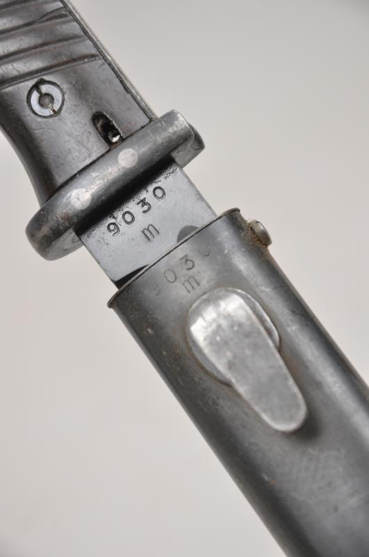 Matching numbered K98 bayonet in excellent condition with maker mark of 'cof' for 'Carl Eickhorn' with date 1940 on back of blade. Serial number 9030 with a high proportion of finish remaining.