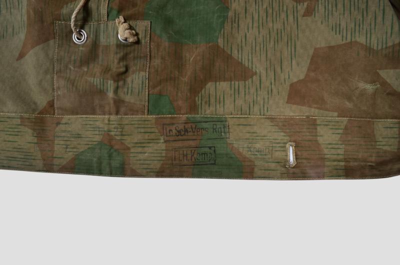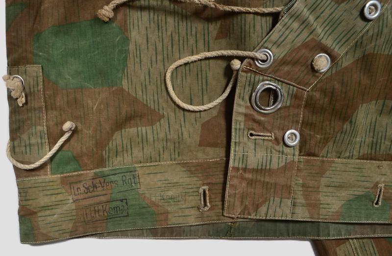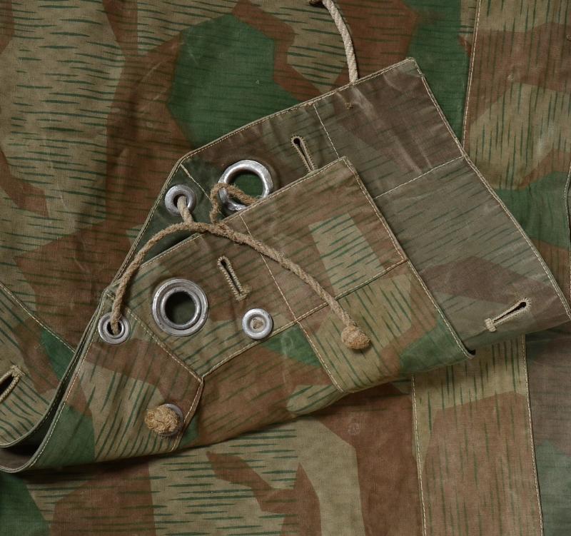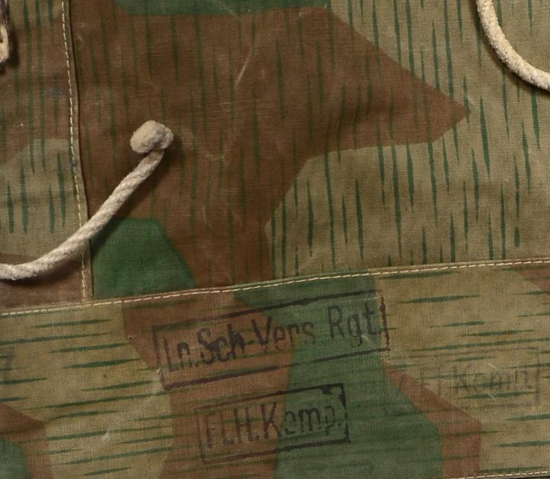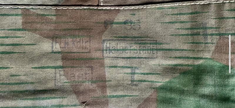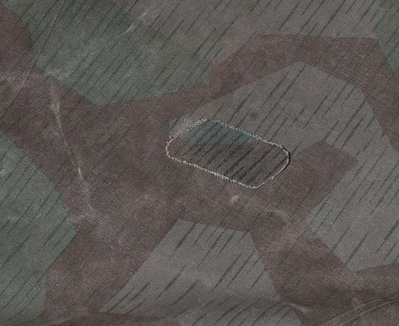A typical field used splinter Wehrmacht zeltbahn with clear Luftwaffe depot markings from the heavily active Halberstad Airfield in Germany.
