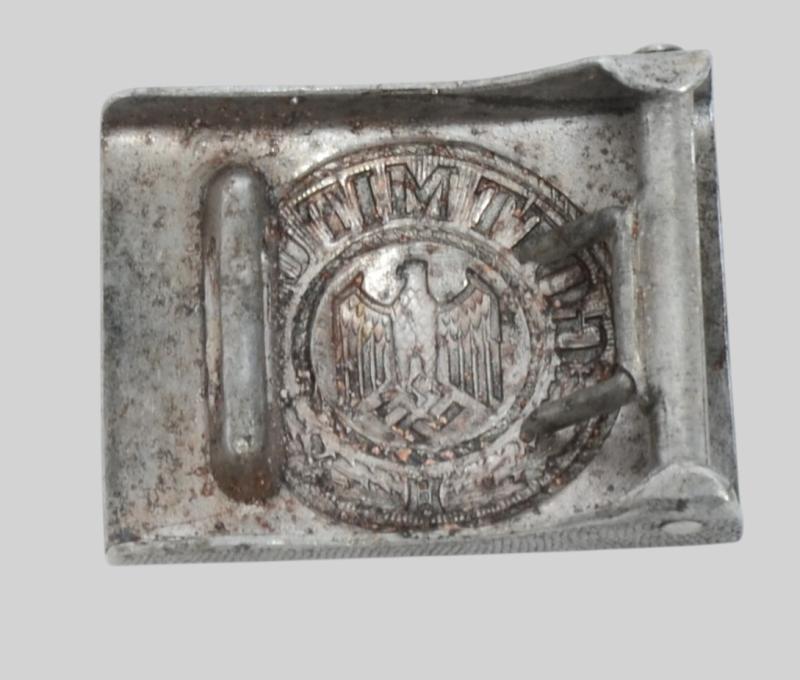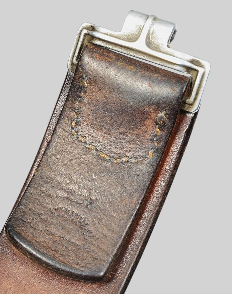A very early 1937 dated standard Heer issue mans Combat waist belt . The die stamped alloy buckle has a nice wear and patina with much detailing still sharp and crisp , With good raised F.R.O maker mark . The leather is very good and supple and has two sets of maker and date stamps with clear 37 date to both leather and also to alloy belt hook