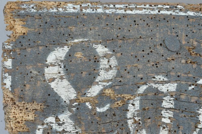 Painted onto wood it has , as can be seen , alot of woodworm holes & is relatively soft to the touch. Perfect for a wall display & offered as it was found just before it was gone forever !