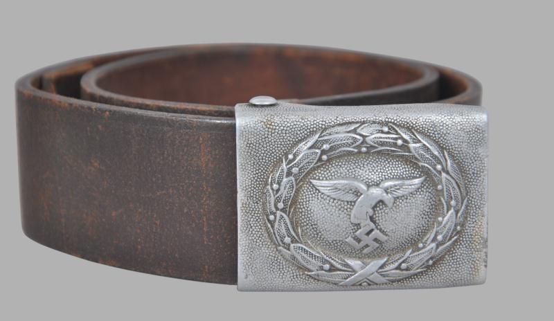 An early production Luftwaffe belt & buckle in brown leather both being LBA marked , the first pattern 'Drooptail' belt buckle tab dated 1936 & having maker mark for 'Overhoff & Cie'.