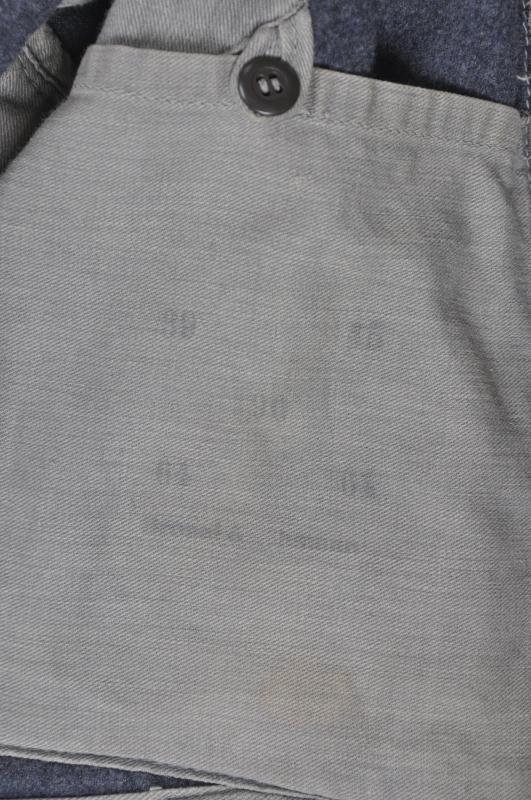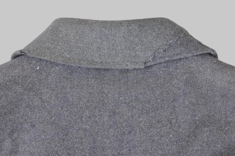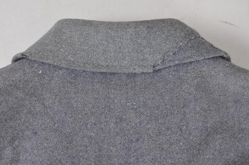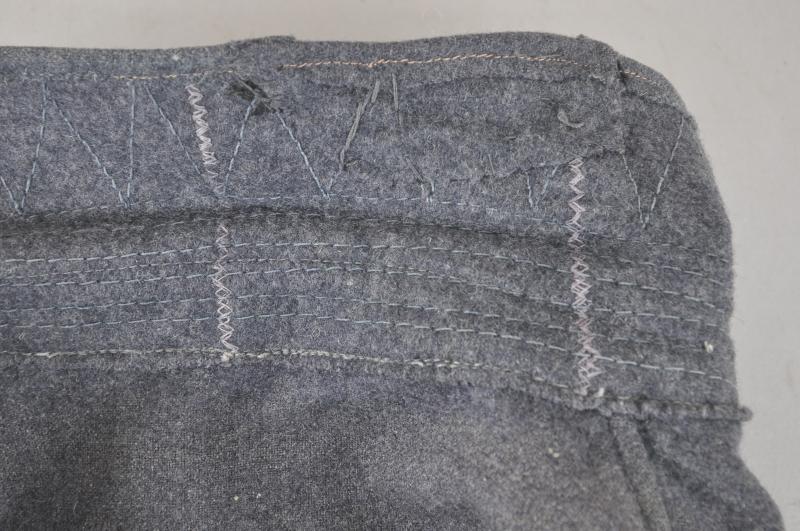 In grey blue wool of the Luftwaffe the one gulled collar tabs are machine stitched onto the tunic & have been in place for a very long time. The machine woven breast eagle is the correct pattern for this bluse & is applied with zig zag stitching as found on most original examples. As always , it is difficult to know exactly when this was done however it has certainly been on there a very long time & has correlating age & wear to the rest of the piece. Interior shows grey cotton twill with faint dice stamped size markings & maker name. Overall a service worn field garment with small patch repair to the collar & a couple of small nips visible only upon close inspection.
