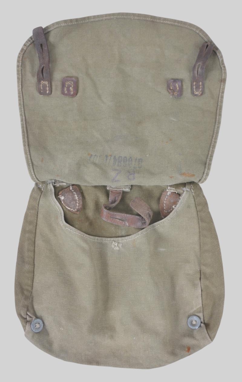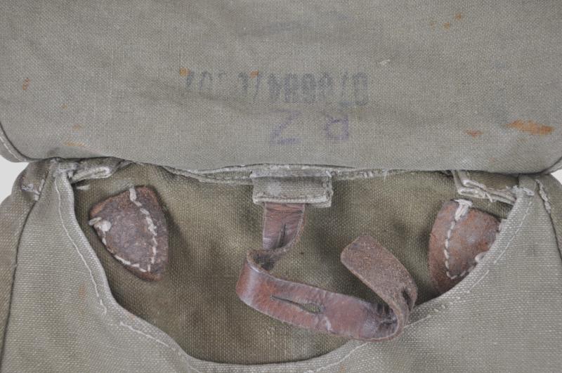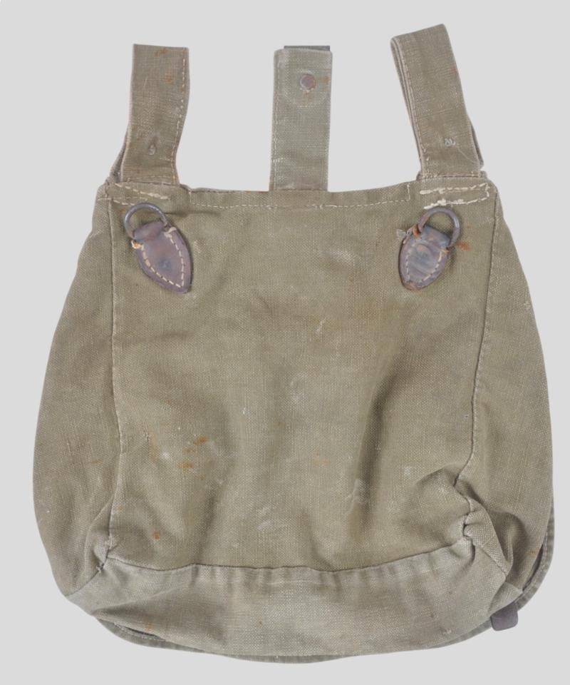 German M31 breadbag of midwar production with steel fittings & belt hook intact. Olive green canvas as used by army & waffen-ss.