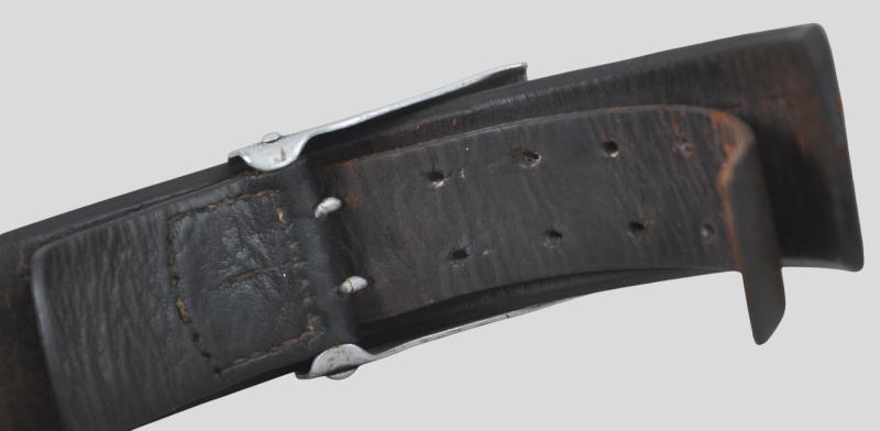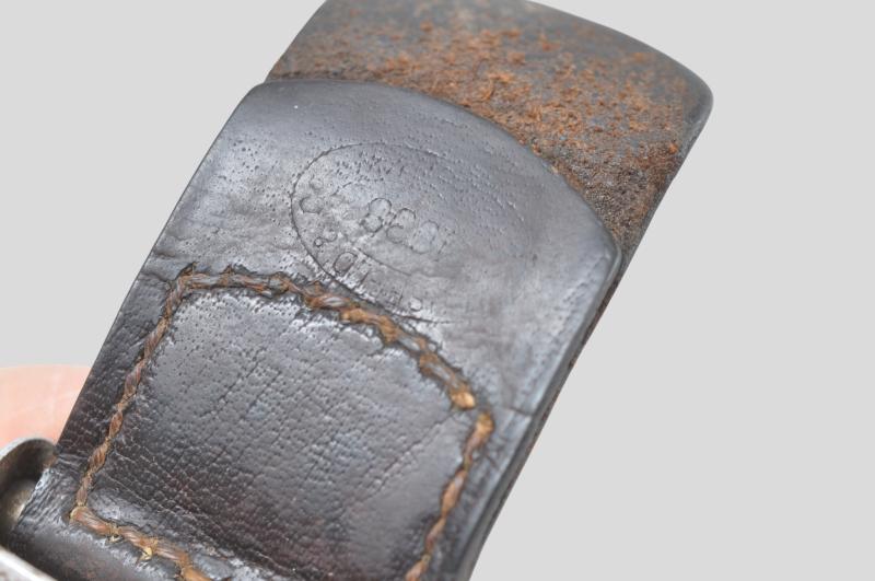 A German army belt & buckle with aluminium buckle having belt tab which is dated 1939. Belt leather dated 1940 & both apparently having been together for a very long time. Faint maker markings to buckle tab.