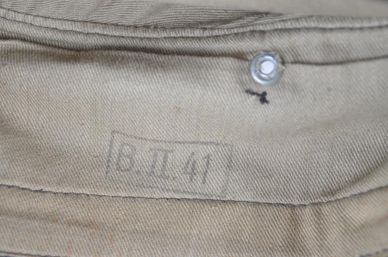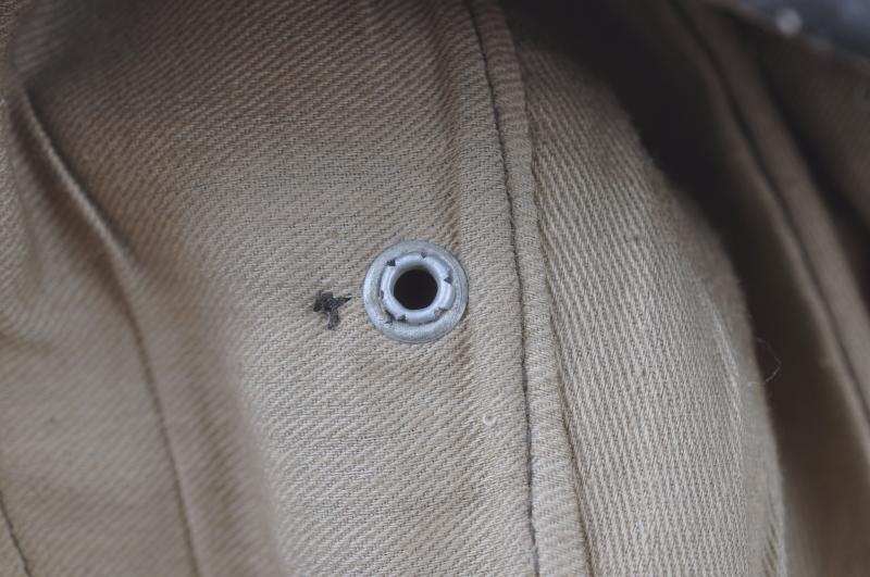 WW2 German Panzer crewmans sidecap with original factory sewn bevo insignia. Black wool body with pink soutache to front for panzer troops. Interior has grey cotton lining with 'LAGO' marking & date 1941. 'LAGO' is the German abbreviation for a co operative of smaller manufacturers who jointly fulfilled a production contract. Inspection marking 'BII41' also visible with segmented grommets , size mark '54' . No moth or damage.