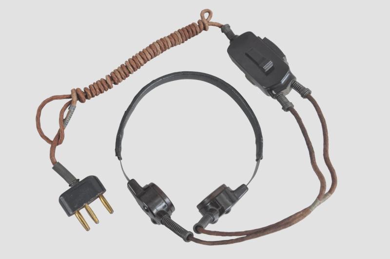 WW2 German Panzer throatmikes as used by armoured crews. Complete with talk switch , jackplug & wartime leads.